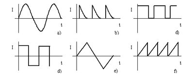 C. Pulsante: Es una corriente continua que sufre cambios regulares de magnitud a partir de un valor constante. Los cambios pueden ser en intensidad o en tensión. Estos cambios o pulsos son siempre en el mismo sentido de la corriente. valor máximo instantáneamente, permanece durante un tiempo y baja a cero su valor, para permanecer sin tensión durante el mismo tiempo que la ha mantenido. Como los tiempos son iguales se denomina de onda cuadrada. Una señal muy empleada para información de revoluciones.