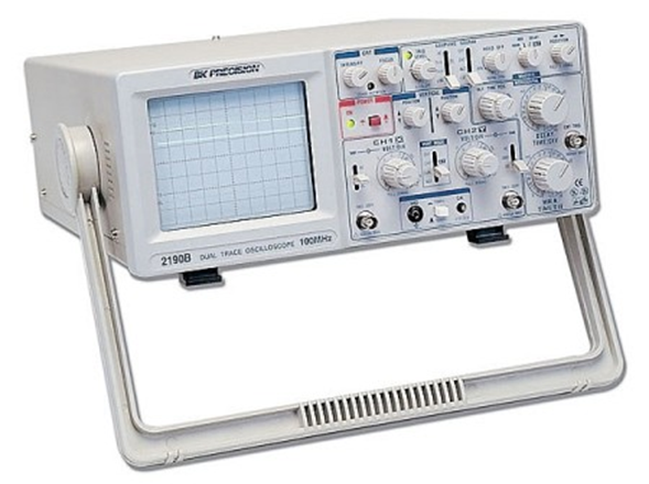 - El osciloscopio: es un instrumento de visualización electrónico para la representación gráfica de señales eléctricas que pueden variar en el tiempo. Es muy usado en electrónica de señal, frecuentemente junto a un analizador de espectro. Presenta los valores de las señales eléctricas en forma de coordenadas en una pantalla, en la que normalmente el eje X (horizontal) representa tiempos y el eje Y (vertical) representa tensiones. La imagen así obtenida se denomina oscilograma. Presenta los valores de las señales eléctricas en forma de coordenadas en una pantalla, en la que normalmente el eje X (horizontal) representa tiempos y el eje Y (vertical) representa tensiones.